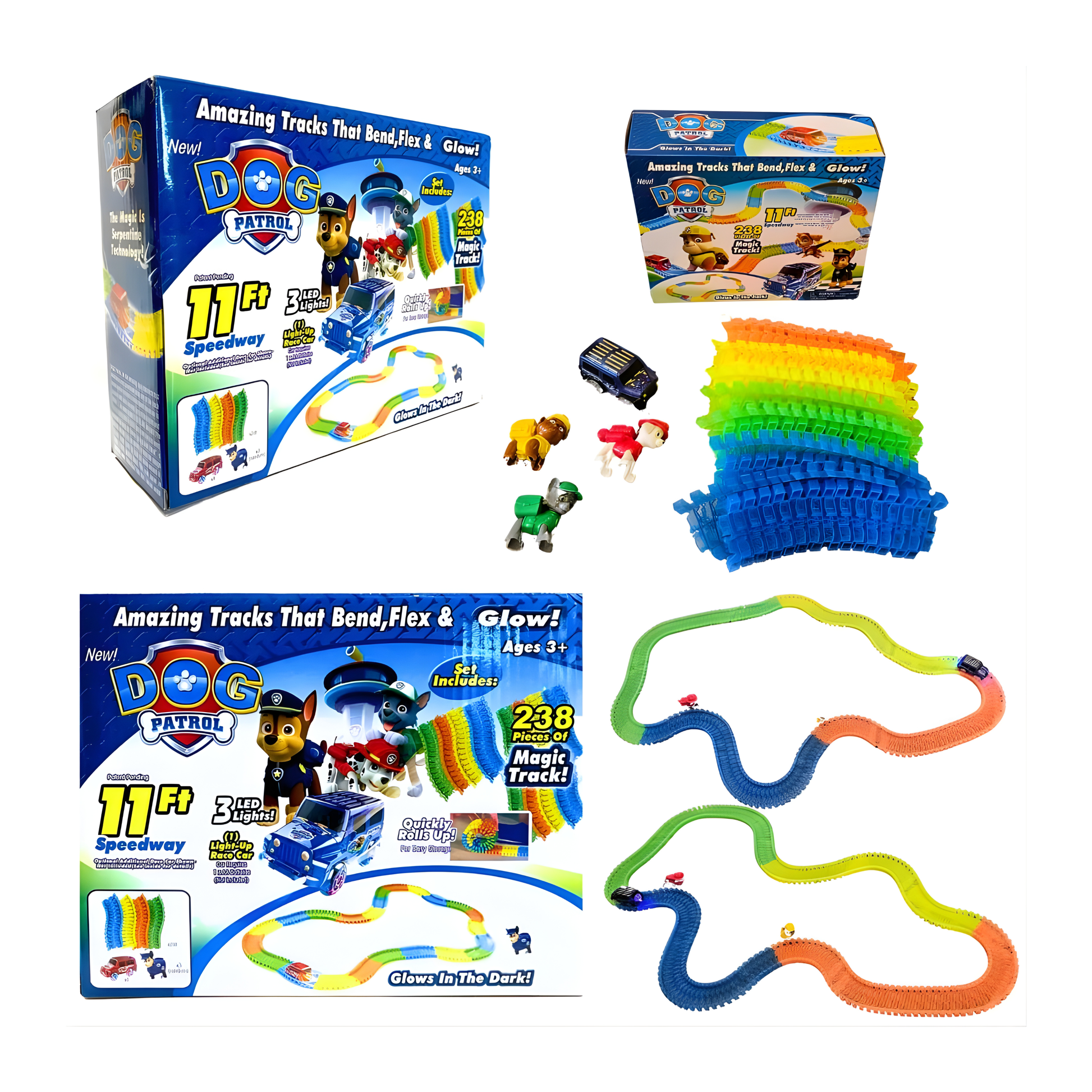 Set je inspirisan popularnim likovima iz Patrolne Šape crtanog serijala, pa je idealan za sve male obožavaoce patrolnih junaka. Sa 11 ft (oko 3,3 m) trkališta, deca mogu da naprave ogromnu stazu koja svetli u mraku i pruža sate kreativne igre.